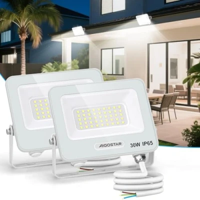 Aigostar Faretto LED da Esterno 30W, 2450LM, Faretti Luce bianca 6500K, di Sicurezza Impermeabile IP65, Per Giardino, Cortile, Garage, Corridoio, Confezione 2