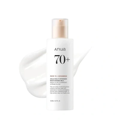 ANUA Latte idratante intensivo Rice 70, lozione per un'idratazione profonda e nutriente, pelle di vetro luminosa, acqua riso, niacinamide, ceramidi, leggero, 150 ml/5,07 fl.oz.