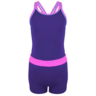 Costume da bagno sportivo intero con gambe per ragazza - La scelta perfetta per la spiaggia e la piscina! Il tessuto di alta qualità - ad asciugatura rapida, resistente agli effetti nocivi della luce solare e dell'acqua clorata Taglio sportivo con gambe corte - perfetto per l'allenamento in piscina Il tessuto flessibile si adatta perfettamente alla figura e non limita i movimenti Fodera sul cavallo per il massimo comfort: 100% Poliestere