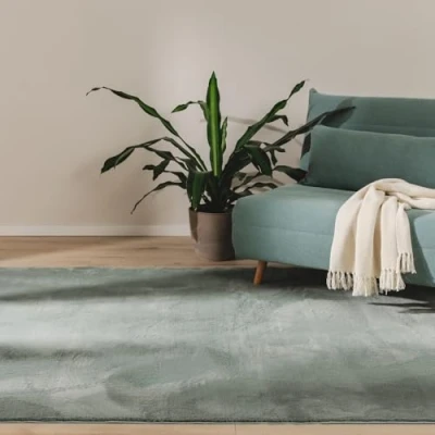 benuta tappeto in pelliccia sintetica Furry verde, 120 x 170 cm, morbido per soggiorno, retro antiscivolo, lavabile, riscaldamento a pavimento
