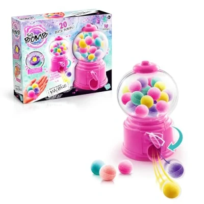 AmazonUNA MACCHINA DI BOMBE DA BAGNO: Un gabinetto per divertirsi con 20 bombe da bagno profumate FACILE : ruota la maniglia per recuperare le bombe da bagno Goditi un bagno profumato: immerge le bombe da bagno in acqua e guardale scioglierle, non resta che rilassarti nel tuo bagno con piacevoli profumi Sorpresa: puoi scoprire 10 charms, crea i tuoi braccialetti e collezionali Contenuto: 1 macchina, 20 bombe da bagno, 10 charms, 1 filo e 1 foglio illustrativo