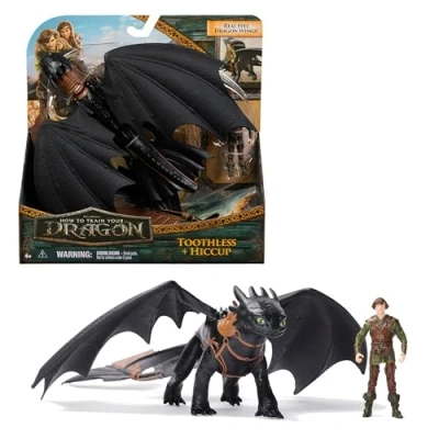 AmazonDRAGO VICHINGO: ricrea le entusiasmanti avventure di Dragon Trainer con l'action figure di Hiccup da 7,5 cm e il drago Sdentato da 33 cm con ali realistiche e arti mobili DETTAGLI REALISTICI: fissa Hiccup in sella a Sdentato e parti per una missione entusiasmante FAI SPICCARE IL VOLO ALL'IMMAGINAZIONE: scatena l'immaginazione con i draghi giocattolo e crea avventure epiche con il tuo drago preferito COLLEZIONALI TUTTI: costruisci la tua collezione di draghi della saga How to Train Your Dragon Include: 1 drago, 1 vichingo GIOCATTOLI PER BAMBINE E BAMBINI: le action figure e i peluche DreamWorks Dragons di Dragon Trainer sono ottimi regali per compleanni o festività per i bambini dai 4 anni in su; Giocattoli per bambini e collezionisti