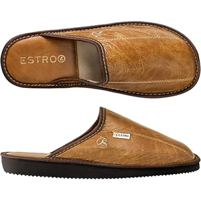 ESTRO Ciabatte Uomo Casa Pelle Pantofole Lana Vera Suola di Memoria Rust (40, Cammello)