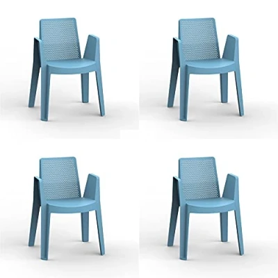 GARBAR Play Set 4 Sedia con Braccioli Esterno Giardino, Terrazza, Balcone, Picnic, Campeggio, Catering, Eventi, Incontri Design, Leggero, Impilabile Retro Blu