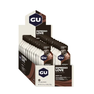 AmazonGU Energy Gel - Integratori di carboidrati digeribile e pratico per endurance - Gluetn Free - VEGAN - 24 gel da 32gr. (Espresso Love)