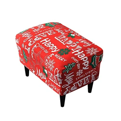 Highdi Copri Pouf Rettangolare Elasticizzato, Spandex Copertura Dell'Ottomano Stampa Moderna Poggiapiedi Poltrona per Soggiorno, Morbido Lavabile Fodere Sgabello (Rosso di Natale)