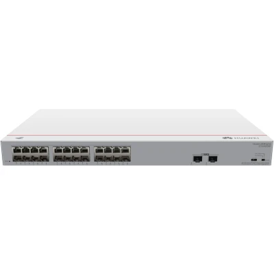 Gli switch Ethernet della serie S100 integrano le funzioni di accesso e trasmissione per garantire un accesso affidabile e una trasmissione dati di alta qualità nelle reti aziendali. > Caratteristiche principali - Switch non gestito, senza configurazione - 24 porte PoE+, 2xSFP uplink - Budget PoE: 124 W, senza ventola - Montaggio a 19 pollici > Tipo di prodotto - Switch - categoria di orecchio (ElektroG): rilevante, categoria 6: piccole apparecchiature IT e di telecomunicazione, Piccole apparecchiature IT e di telecomunicazione B2C > Specifiche - Tipo di switch: Access - RAEE: 39372368 > Connessioni - Porte totali in rame (RJ45): 24 - Porte totali in fibra ottica (fisse o SFP): 2 - Di cui porte compatibili con PoE: 24 - Larghezza di banda: 10/100/1000 MBit/s - Standard PoE: PoE - 802.3af, PoE+ - 802.3at - Budget PoE: 124 W - Tipo di porta principale: rame - Numero di porte PoE+ (af/at): 24 - Numero di porte RJ45 (1G): 24 - Numero di porte SFP (1G): 2 > Funzioni - Switch gestibile: No - Tipo di montaggio: montaggio a rack 19 > Alimentazione - Alimentazione: integrata > Caratteristiche di base - Colore: grigio - Altezza: 43,6 mm - Lunghezza/Profondità: 260 mm - Larghezza: 442 mm - Peso: 3,2 kg > Contenuto della fornitura - Huawei Ekit Switch S110-24LP2SR Huawei CloudEngine S110-24LP2SR. Numero di porte Ethernet RJ-45 a commutazione di base: 24. Alimentazione tramite PoE (Power over Ethernet). Montaggio a rack, fattore di forma: 1U Switch HUAWEI S110-24LP2SR 24x10/100/1000BASE-T porte 2xGE SFP porte alimentazione CA PoE+ eKit HUAWEI eKit S110-24LP2SR Huawei eKitEngine S110-24LP2SR - Switch - 24 x 10/100/1000 (PoE+) + 2 x Gigabit SFP - Desktop, barra di montaggio a rack, barra di montaggio a parete - PoE+ (124 W)
