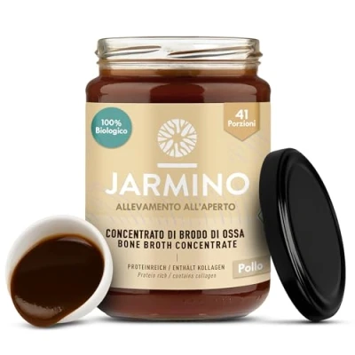 JARMINO Organic Bone Brod Concentrato di pollo allevato all'aperto, dalla Germania, 410 g, 41 porzioni, ricco collagene biologico