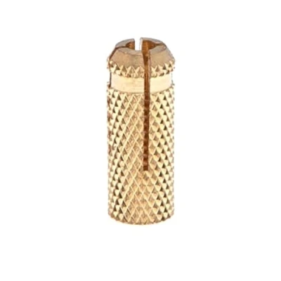 TASSELLI IN OTTONE - Sono ancoraggi femmina progettati per fissare nel calcestruzzo. Far cadere l'tasselli nel foro preforato nel calcestruzzo. Utilizzando un attrezzo di montaggio, l'ancoraggio da parete si espande all'interno del foro nel calcestruzzo. Gli tasselli richiedono un attrezzo per l'installazione. Taglia di M5. Quantittà da 10 pezzi. USO UNIVERSALE - Il tassello ideale per l'installazione su muri in calcestruzzo e pietra compatta, ma anche nel legno duro. Il vantaggio maggiore deriva dalla ridotta profondità di ancoraggio e dalla buona tenuta. Il corpo esterno zigrinato impedisce la rotazione del tassello e consente un'ottima ederenza nel foro del muro. La filettatura metrica interna permette di utilizzare il tassello ottone con normali viti o barre filettate. PESANTE - Gli tasselli in ottone di alta qualità non si incrinano sotto l'impatto a basse temperature. È anche adatto per il fissaggio di componenti al calcestruzzo e al mattone pieno. VANTAGGI - Le pareti rinforzate del tassello permettono di raggiungere carichi elevati mantenendo la resistenza alle vibrazioni. Proteggono la parte incollata dell'elemento in acciaio dalla corrosione e dagli agenti chimici aggressivi. I bulloni o i prigionieri possono essere rimossi e sostituiti senza compromettere il potere di tenuta.