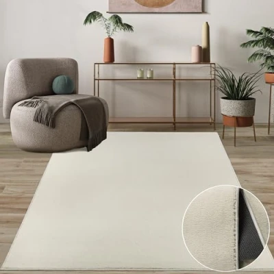 Mia's Carpets Cleo Tappeto da salotto lussuoso e morbido, di facile manutenzione con fondo antiscivolo, crema, 80 x 150 cm