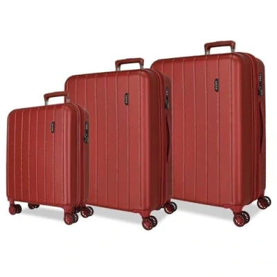 MOVOM Wood Valigia Cabina, Medie, Grandi e Set, Rigida ABS Chiusura TSA, 4 Ruote Doppie Estensibili Bags Bags, rosso, Taglia unica, Set 3 valigie 65 75