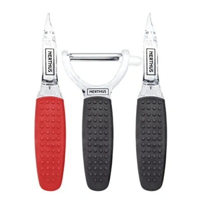 Alta qualità: le lame dei pelapatate sono realizzate in acciaio inossidabile ad alta resistenza. Comodo: i manici hanno una forma ergonomica per adattarsi alla mano e facilitare l'uso. Versatili: include pelapatate con lama girevole liscia, con lama girevole seghettata e lama a Y, tutti adatti per destrimani e mancini. Pratici: utensili di dimensioni ridotte che occupano poco spazio e sono molto utili e durevoli.