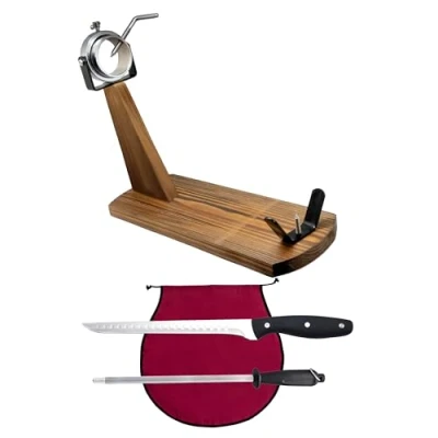 Nerthus Testa Girevole + Copri bordolese affilatrice Manuale Coltello prosciutto Set, Legno Acciaio Inossidabile