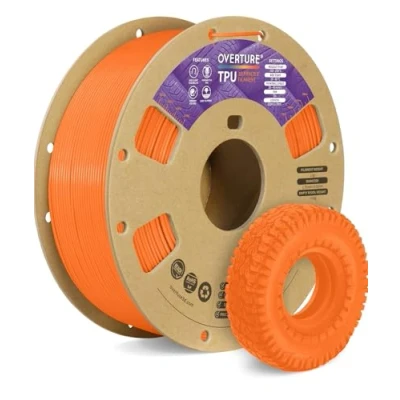 OVERTURE Filamento TPU 1kg, 1.75mm Flessibile per Stampante 3D, Elevata Liquidità 3D (Neon Orange)