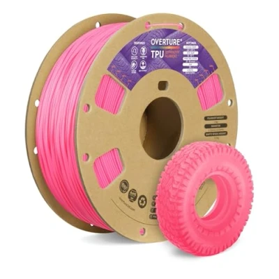 OVERTURE Filamento TPU 1kg, 1.75mm Flessibile per Stampante 3D, Elevata Liquidità, Precisione Dimensionale +/ 0.03 mm, 3D (Rosa Brillante)