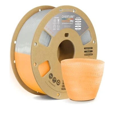 【Filamento TPU Rapido 95A】 Il filamento TPU ad alta velocità di Overture è un filamento a base di poliuretano termoplastico (TPU) ma può stampare 5 volte più velocemente dei filamenti TPU ordinari. Con una durezza Shore di 95A, il TPU ad alta velocità di Overture trova il giusto equilibrio tra morbidezza e resilienza. 【Eccellente Adesione tra Strati】 Imposta lo standard per un'adesione tra strati impeccabile e offre risultati impressionanti. Il TPU di Overture presenta un'adesione tra strati ottimale e una finitura perfettamente liscia, rendendo questi filamenti morbidi e altamente elastici facili da stampare. 【Senza Ostruzioni e Senza Bolle】 Progettato e prodotto con la nostra formula brevettata senza ostruzioni per garantire un'esperienza di stampa fluida e senza interruzioni. Tutte le bobine subiscono un completo essiccamento per 24 ore prima dell'imballaggio e sono sigillate sottovuoto in un'imballaggio in foglio richiudibile. Per mantenere prestazioni ottimali, conservare il filament TPU in un contenitore sigillato con disidratanti (gel di silice) o asciugarlo per >8 ore a 65˚C. 【Ampia Compatibilità e Selezione di Colori】 I filamenti Overture si integrano perfettamente con la maggior parte delle stampanti 3D consumer e industriali. Esplora il tuo lato creativo con la nostra vasta selezione di colori vibranti, garantendo un'ampia gamma di possibilità per le tue creazioni uniche. 【Stampa supportata & fluida】Stampa con fiducia. Il filamento Overture viene fornito con supporto dedicato e una durata di conservazione di 1 anno per le bobine non aperte (se conservate correttamente). Ci impegniamo a fornire soluzioni tempestive per un’esperienza di stampa senza interruzioni. Il tuo partner affidabile per la stampa 3D.