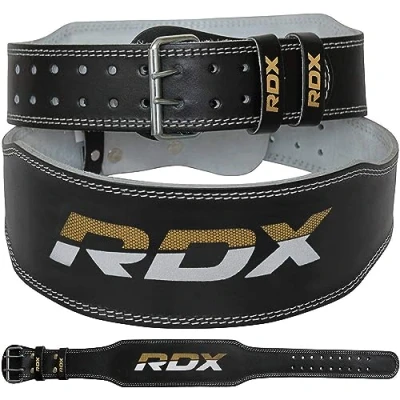 RDX Cintura per Sollevamento Pesi Palestra Fitness, Pelle Bovina, Supporto Lombare Imbottito da 4" e 6", 10 Fori Regolabili, Powerlifting Bodybuilding Deadlifts Squat Esercizio Allenamento