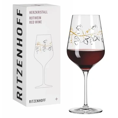 RITZENHOFF 3001012 Bicchiere da vino rosso 500 ml Serie Cuore cristallo n. 12 Vetro con motivo uva in oro rosa Made Germany