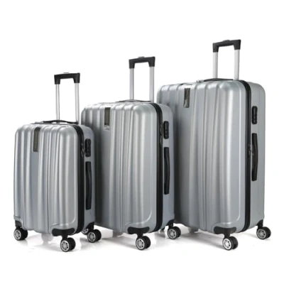 ROYALTY LINE, Set 3 Valigie, ABS Rigido Ultraleggero 4 Ruote Girevoli a 360 Taglia S 55x38x18cm, M 67x44x24cm, L 76x49x28cm, Doppie Cinghie, Chiusura Combinazione, Manici Rinforzati, Silver