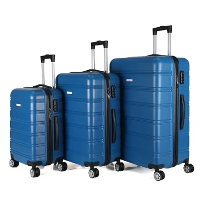 ROYALTY LINE, Set 3 Valigie, Valigie Rigide ABS Ultraleggere 4 Ruote Girevoli a 360 Taglia S 55x38x18cm, M 67x44x24cm, L 76x49x28cm, Doppie Cinghie, Chiusura Combinazione, Manici Rinforzati, Blu