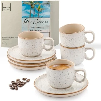 Sänger Rio Creme Set di 8 tazze da caffè per 4 persone, e moca, antigraffio, lavabili in lavastoviglie, adatte al microonde, piattini color crema 80 ml Value