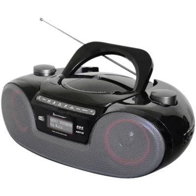 Scoprite il Soundmaster SCD8300SW - la vostra radio digitale portatile e il lettore CDScoprite il Soundmaster SCD8300SW, il versatile registratore radiofonico ideale per gli amanti della musica e degli audiolibri. Questo dispositivo combina un design moderno con una tecnologia potente e vi offre un'esperienza audio completa. Che siate in bagno, in cucina o in viaggio, il Soundmaster vi offre il suono giusto ovunque vi troviate!Il Soundmaster SCD8300 offre un'eccezionale qualità di ricezione grazie alla radio digitale DAB+ e all'FM RDS. È possibile utilizzare fino a 40 preselezioni per trovare rapidamente le stazioni preferite. La funzione di equalizzazione pre-programmata vi offre diverse impostazioni sonore che potete regolare in base ai vostri gusti. Potrete sempre godere del suono migliore, indipendentemente da ciò che ascoltate.Opzioni di riproduzione versatili per ogni occasioneQuesto lettore CD radio digitale portatile non solo supporta CD e CD-R/RW, ma anche file MP3 tramite USB e schede SD. La funzione di ricezione Bluetooth® vi permette di ascoltare musica in streaming in modalità wireless dal vostro smartphone o tablet. Se vi piace ascoltare gli audiolibri, la speciale funzione audiolibro è l'ideale per voi. Basta regolare la riproduzione in modalità snooze per rilassarsi e godersi la serata.Funzioni aggiuntive per la vostra comoditàIl Soundmaster SCD8300SW non è solo una semplice radio, ma offre anche pratiche funzioni come la sveglia e la funzione sleep/snooze. Il comodo display LCD a matrice di punti con dimmer consente di avere tutto sotto controllo anche al buio. Il collegamento Aux In da 3,5 mm e il collegamento per cuffie da 3,5 mm offrono ulteriori opzioni di connessione per il piacere della musica.Un compagno elegante per ogni occasioneChe si tratti di un picnic al parco, di relax a casa o in ufficio, lo stereo portatile Soundmaster SCD8300SW colpisce per il suo design elegante e compatto. Il design portatile vi permette di portare la musica con voi ovunque andiate. Non perdetevi più la vostra canzone preferita e godetevi i vostri brani preferiti ovunque vi troviate!Consigli per l'uso: per un'esperienza sonora ottimale, vi consiglio di provare le preimpostazioni dell'equalizzatore per regolare i suoni della vostra musica preferita in base ai vostri gusti. Considerate anche la possibilità di salvare gli aggiornamenti regolari delle vostre stazioni preferite, in modo da ricevere sempre gli ultimi successi e le ultime novità.Nota di sicurezza: assicurarsi di utilizzare il Soundmaster SCD8300SW in un luogo asciutto per evitare possibili danni dovuti all'umidità. Quando si utilizza la presa per le cuffie, il volume deve essere mantenuto a un livello sicuro per evitare danni all'udito. soundmaster, SCD8300SW, radio digitale portatile, lettore CD, funzione audiolibro, Bluetooth, DAB+, radio FM, connessione USB/SD, connessione cuffie, sveglia, boombox Streaming wireless Grazie al Bluetooth V5.3, è possibile riprodurre facilmente la musica in streaming dal proprio smartphone, tablet o computer portatile, per la massima comodità.Modalità audiobook La speciale modalità audiobook consente di ascoltare i vostri audiolibri preferiti in modo rilassato e rende l'ascolto particolarmente piacevole.Uso flessibile Alimentato dalla corrente elettrica o dalle batterie (8x LR20/D), lo stereo portatile può essere portato con sé ovunque - perfetto per i viaggi!Funzioni pratiche Grazie al display LCD a matrice di punti dimmerabile, alla funzione sveglia e alle preimpostazioni dell'equalizzatore, il Soundmaster SCD8300SW è ideale per qualsiasi casa. Soundmaster DAB+Boombox SCD8300SW sw Produttore:Soundmaster Denominazione:DAB+Boombox CD/MP3,USB,Cassette Tipo:SCD8300SW sw Colore:nero Potenza nominale: 12 W Bluetooth:sì Porta USB:sì Soundmaster DAB+Boombox SCD8300SW sw: maggiori dettagli Boombox CD con radio DAB+/UKW-RDS. CD, CD-R/RW, CD-MP3. Riproduzione USB/SD-MP3. Funzione di ricezione Bluetooth®. Funzione audiolibro. 40 stazioni preimpostate ciascuna. Funzione di ripetizione/random/programmazione CD/USB. Equalizzatore - impostazioni audio pre-programmate. Display LCD a matrice di punti con dimmer. 2 orari di sveglia con funzione weekend. Sveglia con radio, CD, USB, SD o segnale acustico. Funzione sleep/snooze. collegamento Aux In da 3,5 mm. collegamento per cuffie da 3,5 mm. Potenza di uscita 2 x 6 W RMS. Funzionamento a rete CA 110 - 230 V ~ 50/60 Hz. Funzionamento a batteria DC 12 V, 8 x LR20/D (batterie non incluse) In dotazione: Wörlein GmbH DAB+Boombox CD/MP3,USB,Cassette SCD8300SW bw, Unità di imballaggio: 1 Pz, EAN: 4005425012351 Il sistema CD/radio Soundmaster SCD8300, nell'elegante colore nero, combina un design moderno con una funzionalità versatile. Godetevi la trasmissione wireless della musica grazie al Bluetooth V5.0 e ascoltate le vostre stazioni preferite grazie al ricevitore radio DAB+ e FM-RDS con 20 preselezioni. Il sistema è compatibile con CD, CD-R/RW e MP3 e offre anche un lettore di schede SD/MMC per una maggiore varietà di supporti. Con una potenza di uscita di 2x 6 watt RMS e un equalizzatore pre-programmato, potrete godere di un'esperienza sonora eccellente. Ideale per tutti gli amanti della musica! Il Soundmaster SCD8300SW è uno stereo portatile nero compatto con un'eccellente potenza di 2x 6 watt RMS del produttore di hi-fi Soundmaster e dispone di una radio DAB+ e FM con un totale di 80 stazioni preimpostate. L'unità CD situata nella parte superiore dell'alloggiamento riproduce tutti i tipi di CD standard, siano essi CD, CD-R, CD-RW o CD-MP3. L'unità dispone anche di funzioni quali la funzione di ripetizione, la riproduzione casuale o la funzione di audiolibro (funzione di ripresa). Sono presenti anche uno slot per USB e una scheda SD per la riproduzione di file MP3. È possibile utilizzare il display LCD oscurabile per impostare, tra l'altro, la doppia sveglia. È possibile scegliere di essere svegliati da CD, USB, SD, radio o dal no
