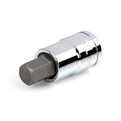 La punta in acciaio S2 è press-fit nella presa per una connessione diritta e permanente che non può allentarsi nel tempo La punta esagonale a 6 lati è lavorata per tolleranze precise per una vestibilità esatta con elementi di fissaggio esagonali La marcatura grande e trasparente stampata è facile da leggere e non si consuma Quattro scanalature di arresto forniscono un collegamento sicuro con l'utensile di azionamento e un foro passante forato consente il bloccaggio con perno di fissaggio La finitura cromata lucida si pulisce facilmente ed è altamente resistente alla corrosione. Il bordo interno smussato dell'apertura della presa aiuta a guidarlo senza problemi sugli elementi di fissaggio