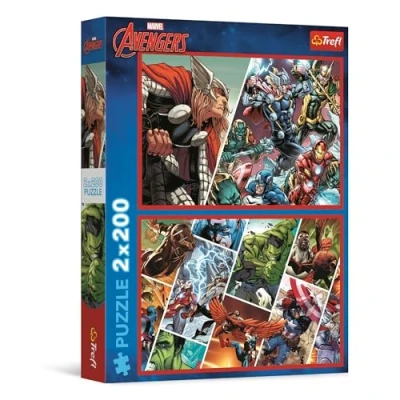 Trefl 2in1: Marvel The Avengers, Protettori del Mondo 2 x 200 Pezzi Set di Due Puzzle per Ragazzi, Multicolore, 13318