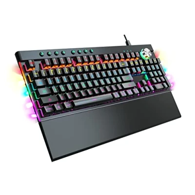 VARR NEON è una tastiera meccanica da gioco dotata di dodici modalità di retroilluminazione a LED e un controllo analogico del volume e dell'intensità della luce. 6 colori di retroilluminazione e 12 modalità, interruttore meccanico JIXIAN BLUE, manopola di regolazione analogica, alloggiamento in alluminio, 8 pulsanti multimediali, poggiapolsi rimovibile Gli interruttori blu JIXIAN di alta qualità offrono un comodo punto di attivazione evidente che è insostituibile per le attività impegnative. Questa soluzione garantisce durata e affidabilità. 8 tasti multimediali consentono di controllare facilmente la riproduzione del suono: vai alla libreria, regola volume, mute, avanti, riavvolgimento, riproduzione/pausa e termina la riproduzione. Con la manopola di regolazione analogica, è possibile regolare l'intensità della retroilluminazione o il volume del suono in modo estremamente preciso. Anti-ghosting è una caratteristica che impedisce che la tastiera venga bloccata quando vengono premuti più tasti contemporaneamente. Questo è un sollievo che ti permette di lavorare in modo affidabile mentre esegui molti comandi nei giochi.