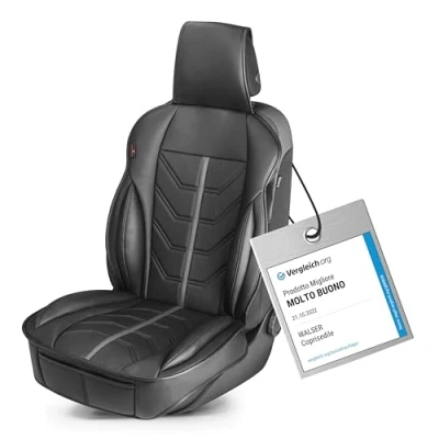 WALSER coprisedile universali per auto Kimi, Confronto vincitore* accessori nero/grigio, coprisedili anteriori, 1 protezione sedile in similpelle traforata di alta qualità
